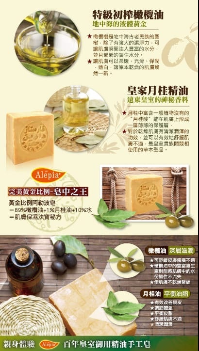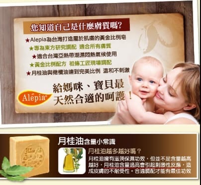 ► 小朋友 建議選用1% 或 5% 月桂成份的阿勒頗古皂已經足夠。