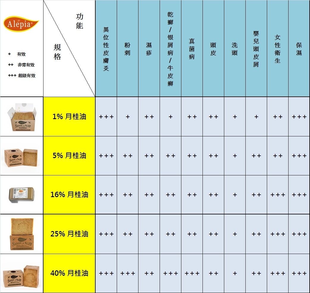 ► 濕疹、暗瘡、皮膚炎、粒粒等肌膚問題較困擾的時候,建議選用16% 或 25% 月桂成份的阿勒頗古皂-以較高的月桂成份,消炎殺菌,針對改善問題。較嚴重的時候可選40%月桂成份的阿勒頗古皂。